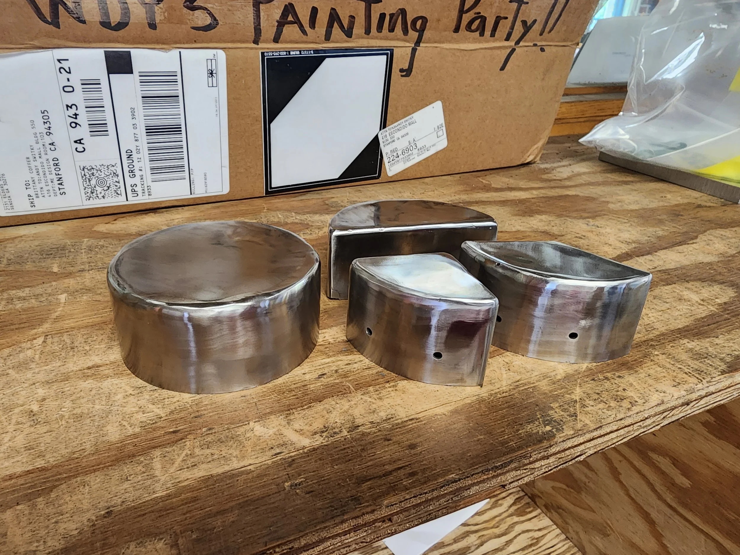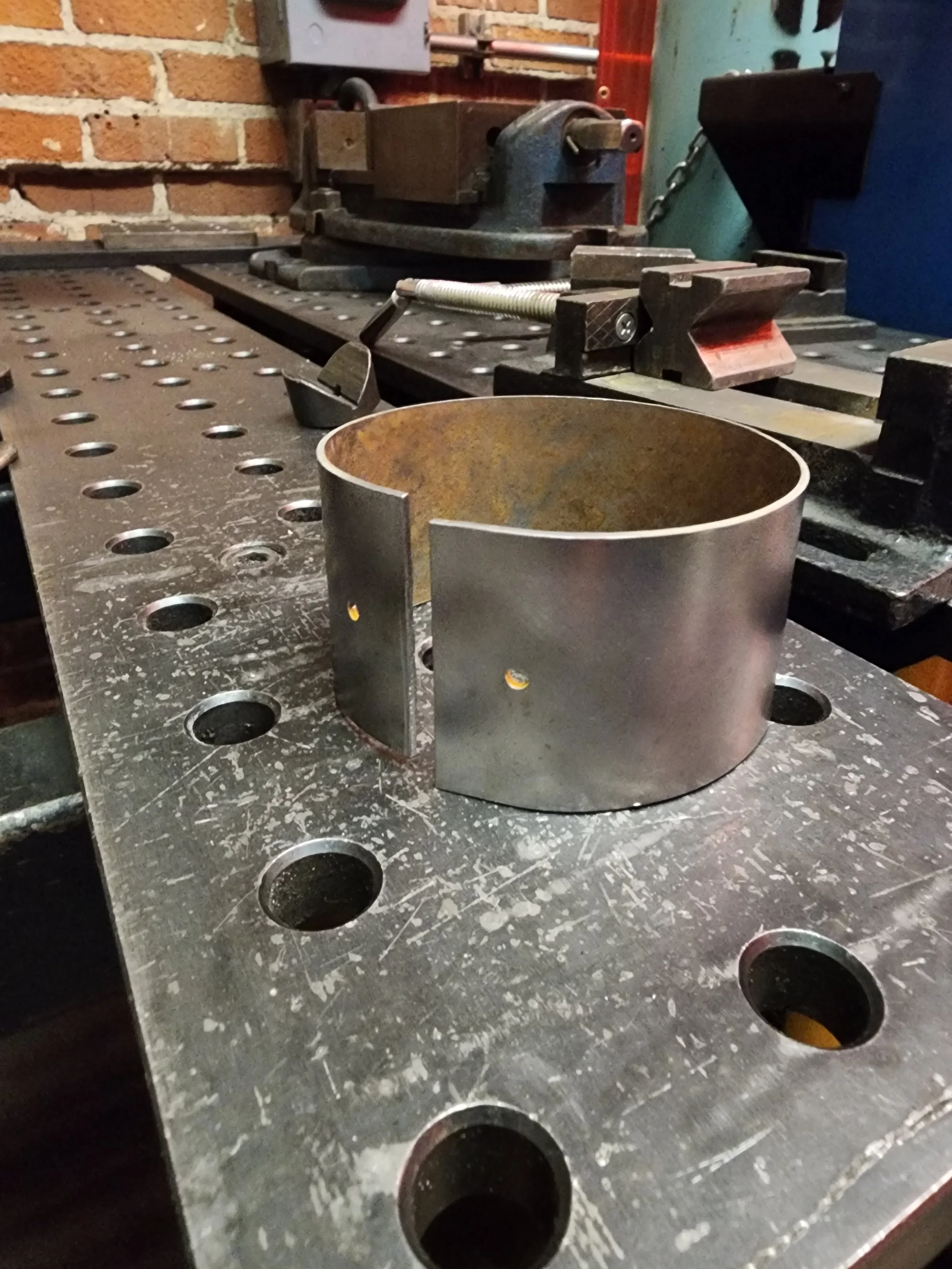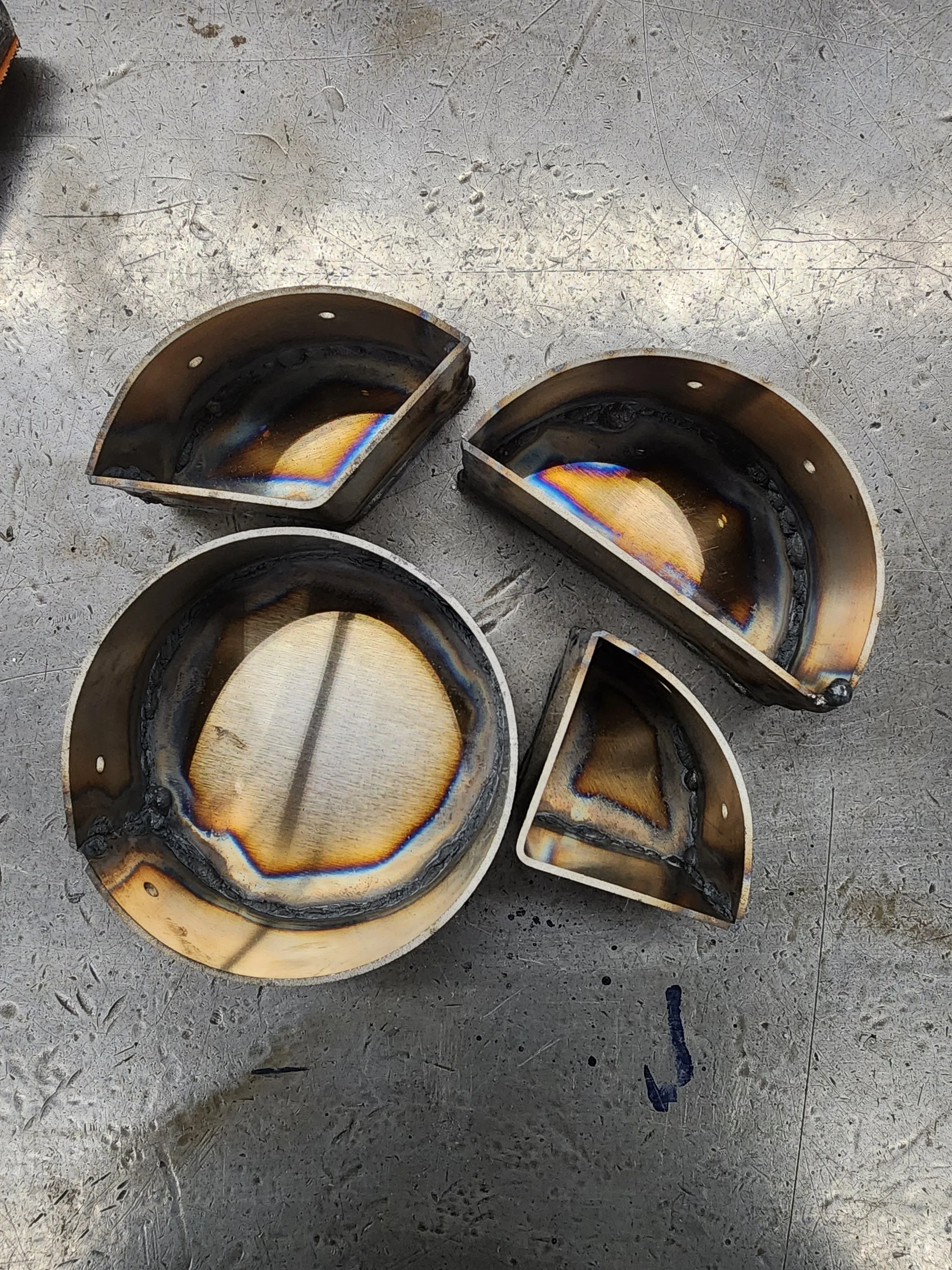 The cups would be created from sheet metal, formed via slip roller, and TIG welded together.