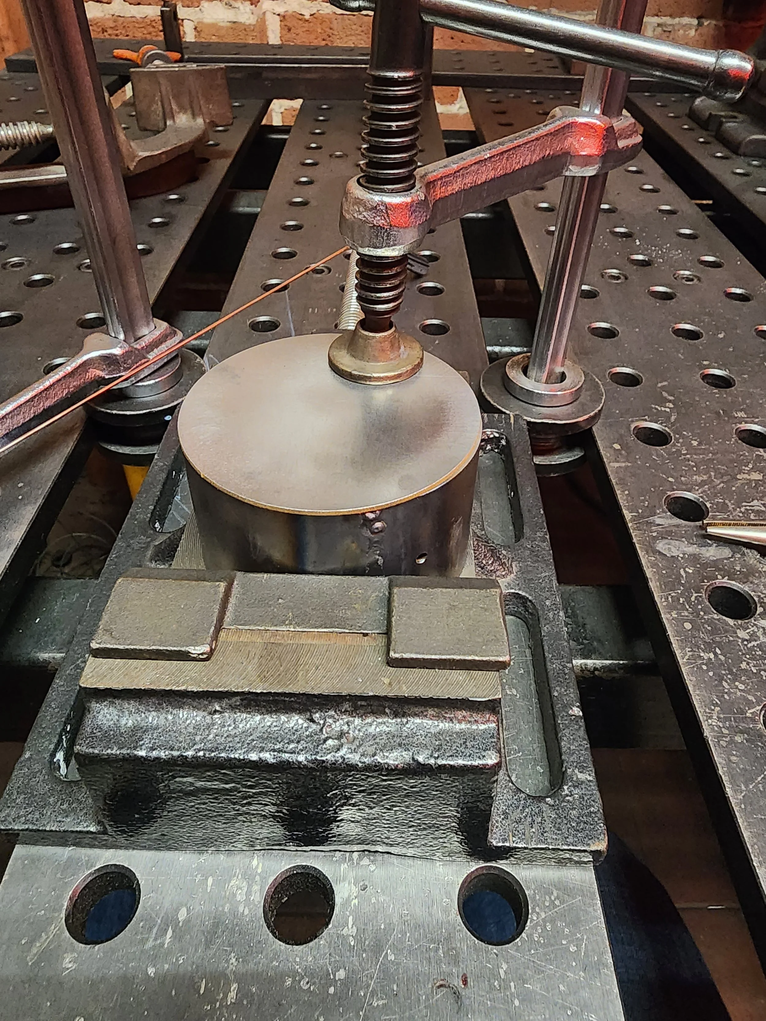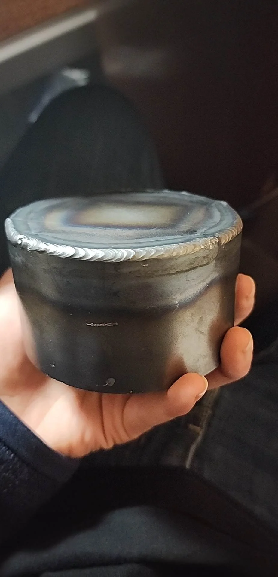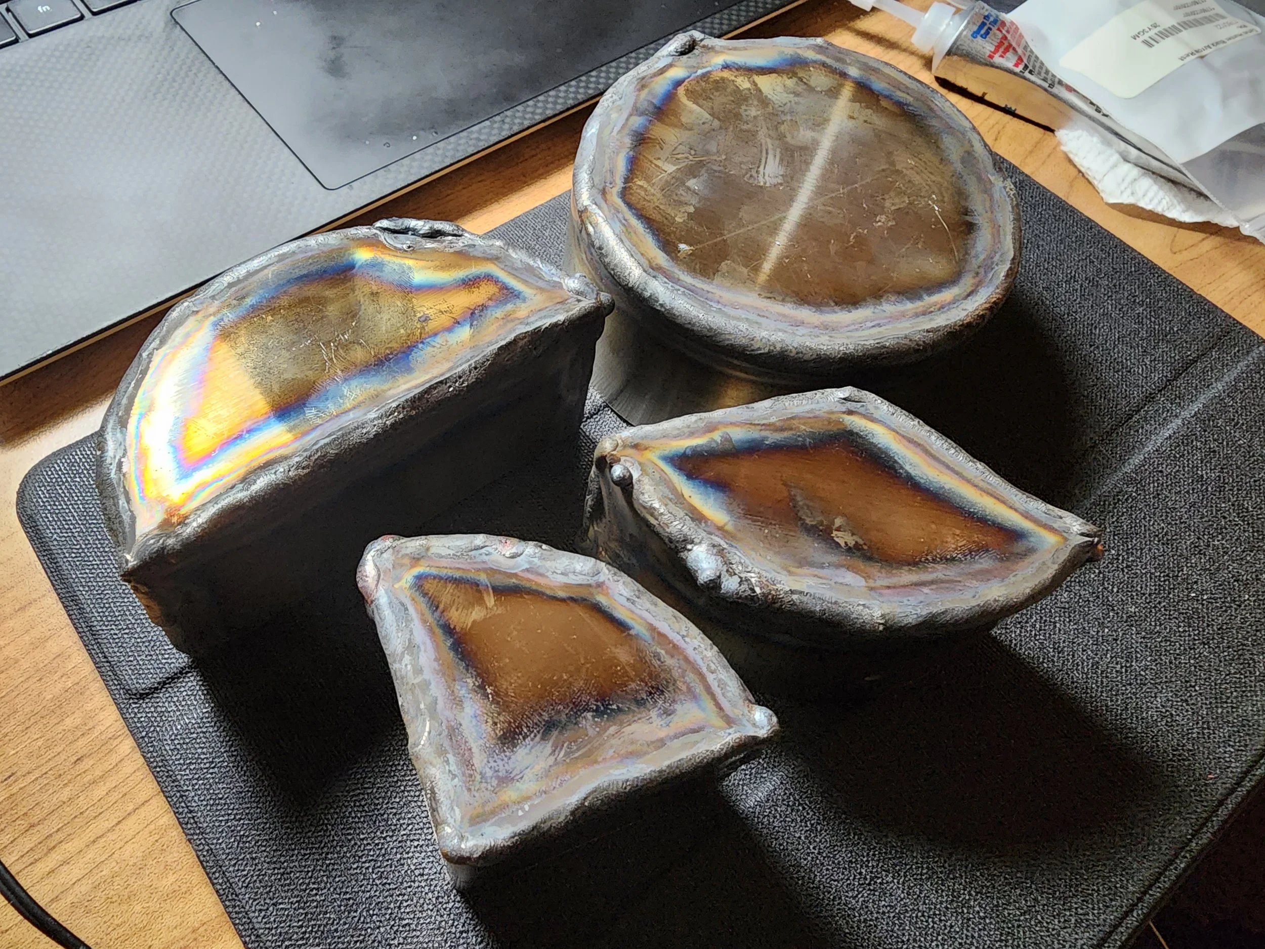 The cups would be created from sheet metal, formed via slip roller, and TIG welded together.
