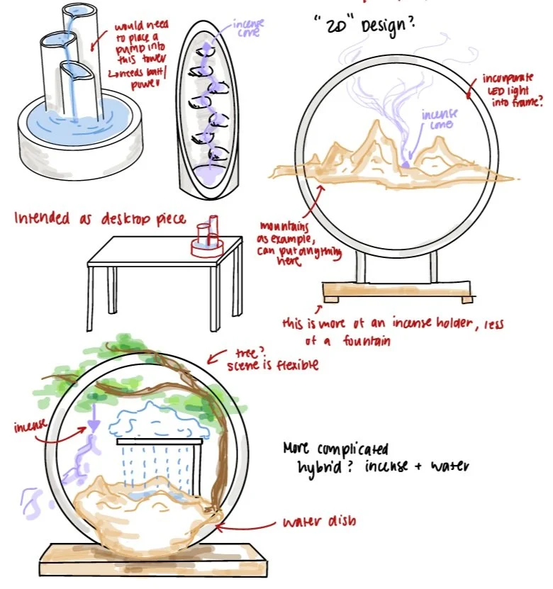 This is designed to be a desktop fountain that also burns incense. In the event that plumbing is too hard and water isn’t possible, this can also just be an incense holder.